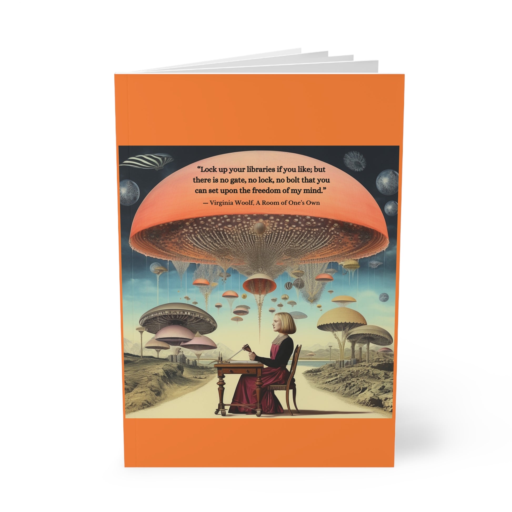 A notebook for the fiercely curious and wonderfully independent ✨ Featuring Virginia Woolf’s iconic quote — “Lock up your libraries if you like, but there is no gate, no lock, no bolt that you can set upon the freedom of my mind” — this notebook celebrates creative freedom, intellect, and individuality. It’s a space to explore your thoughts, ideas, and imagination without limits. Perfect for adults who appreciate intellect and creativity. Ideal for gifts during birthdays, graduation, or any occasion celebrating individuality and freedom of expression.