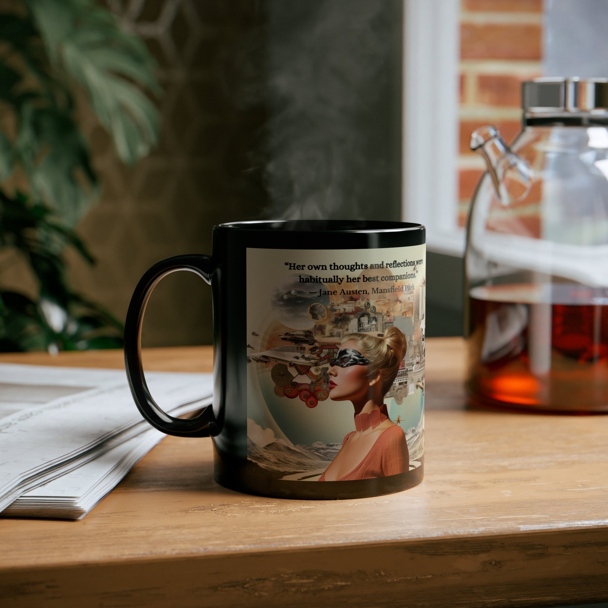 Austen's "Her Own Thoughts" Black Ceramic Mug - Reflective Comfort.