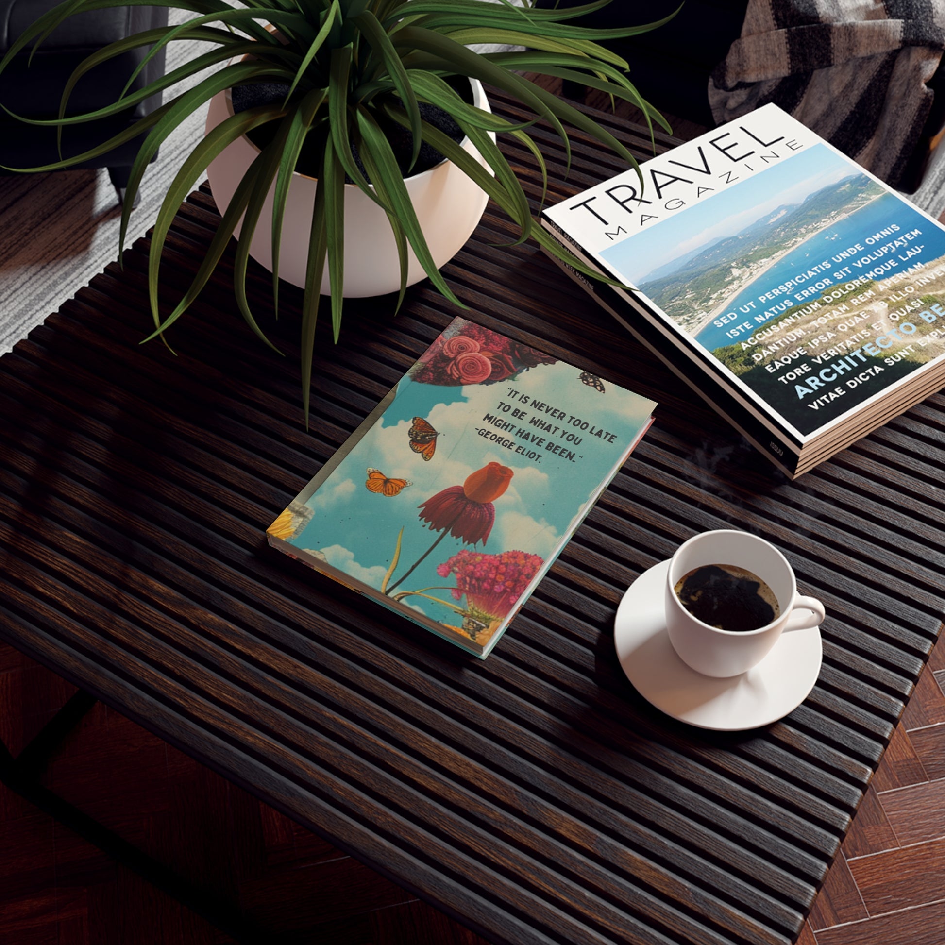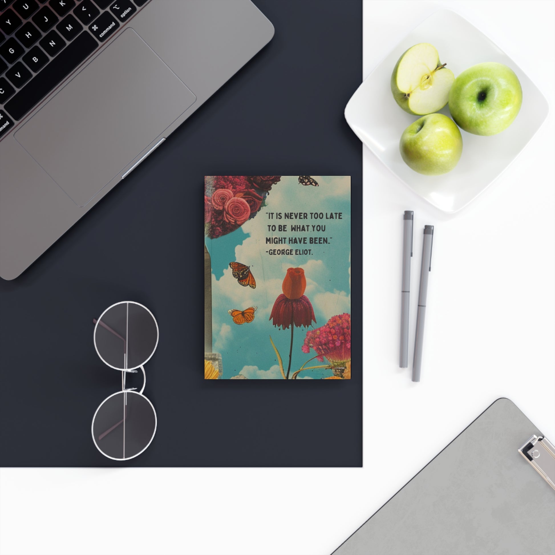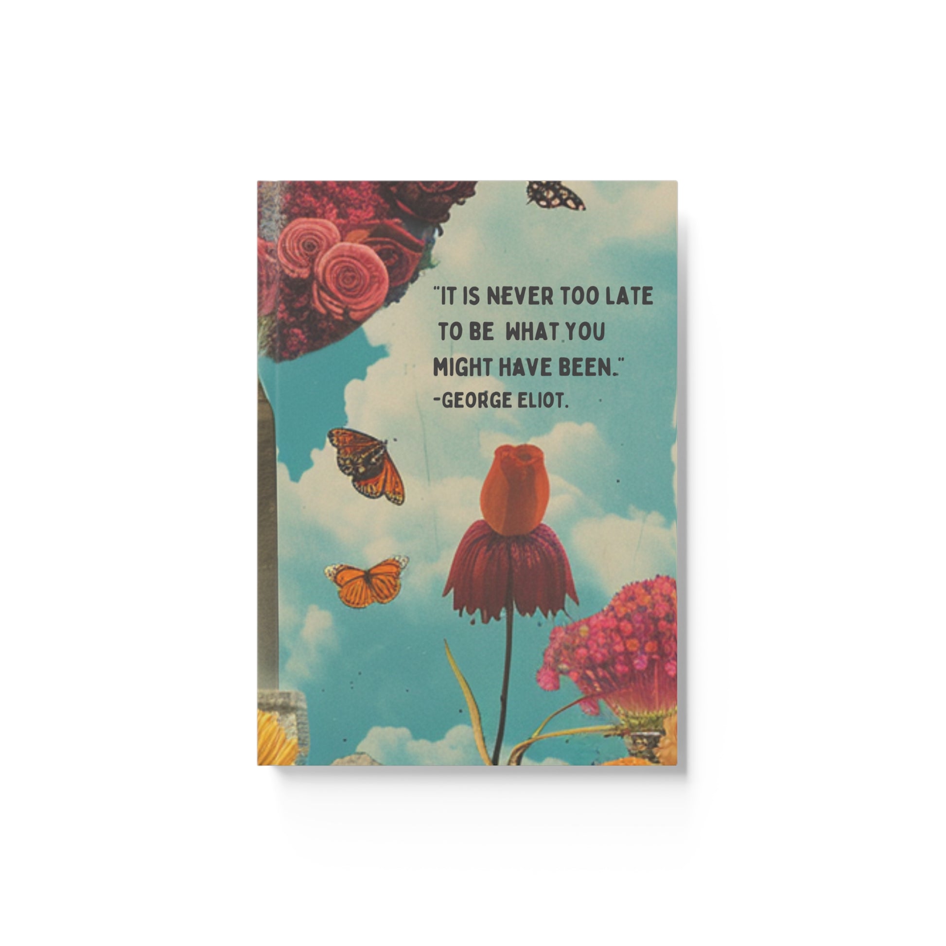 Elevate your organisation and inspiration with our hardback notebook, adorned with the timeless wisdom of George Eliot: "You're never too old to be who you might have been," from the classic book "Three Guineas." Whether you're jotting down schedules, to-do lists, or exploring creative ideas, this personalized journal is your stylish companion for capturing it all.