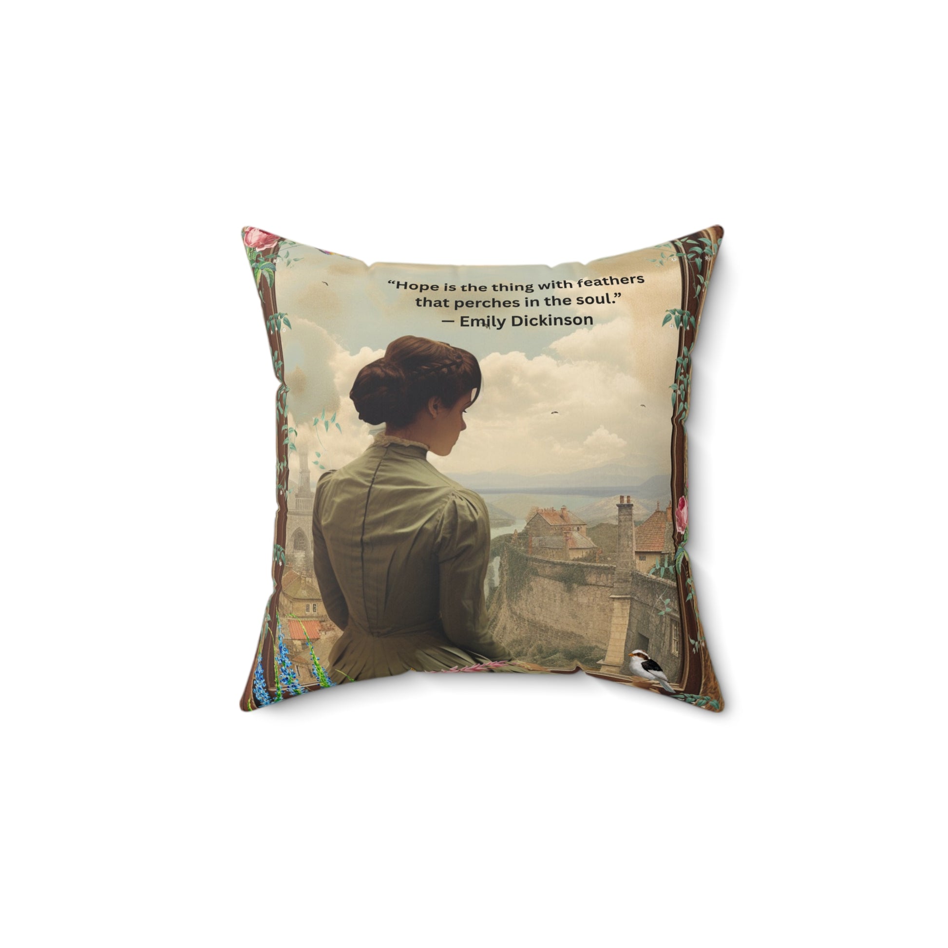 “Hope is the Thing with Feathers” – Emily Dickinson Quote Cushion | Literary Home Décor for Comfort & Inspiration