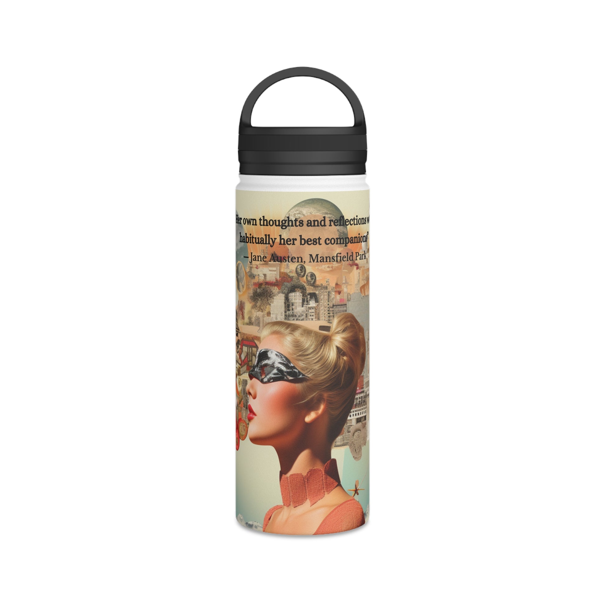 Sip in sophistication with our stainless steel water bottle, echoing the sentiments of Jane Austen: “Her own thoughts and reflections were habitually her best companions,” from "Mansfield Park". Crafted for the literary adventurer, this bottle comes in a single size, 18oz, offering optimal portability without compromising on capacity.