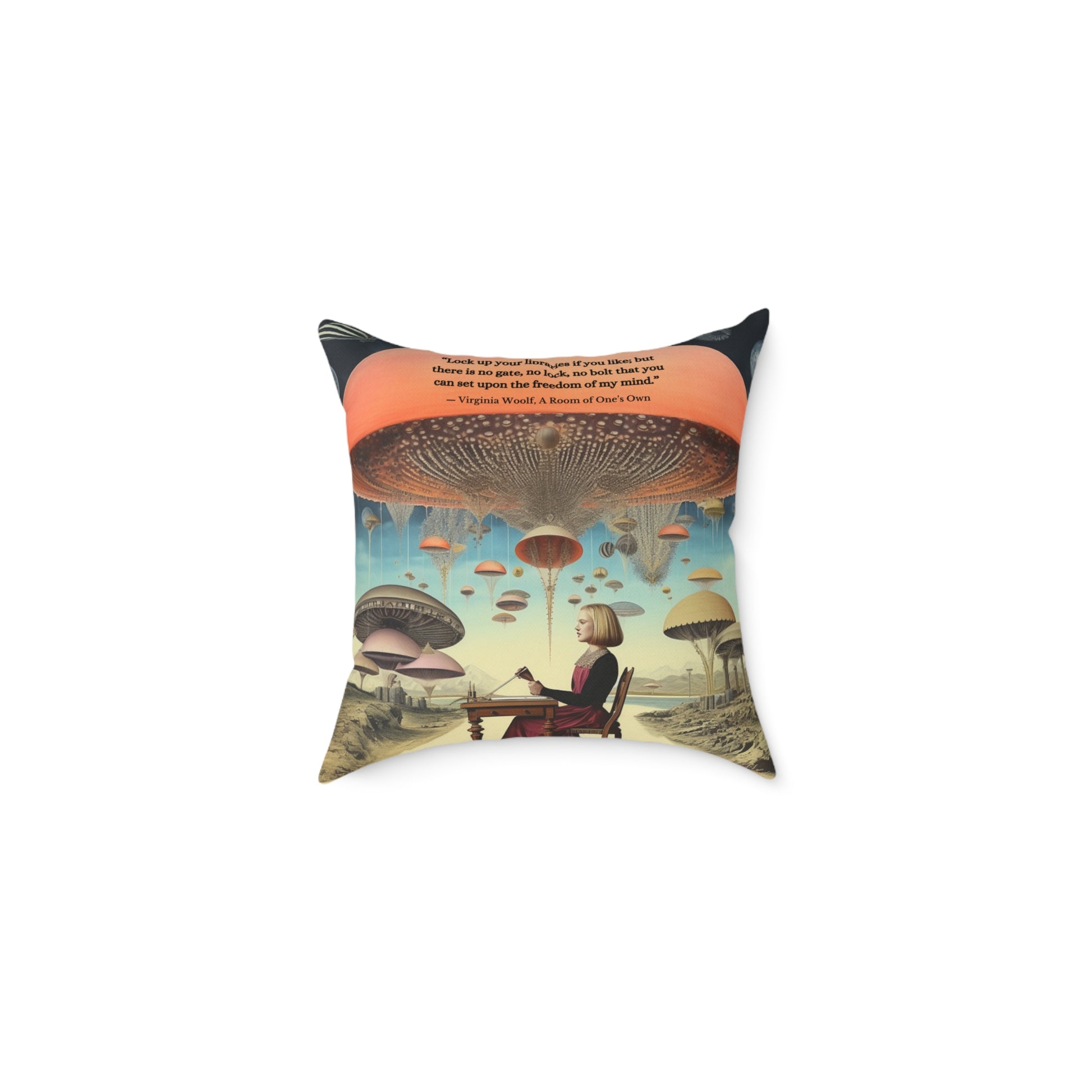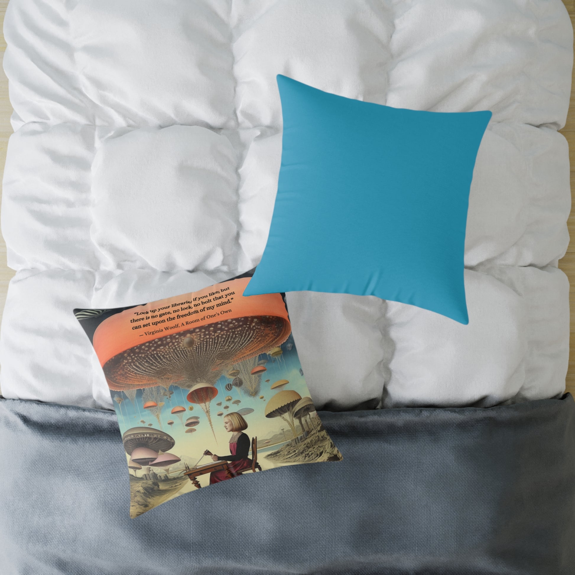 Embrace the spirit of literary freedom with this luxury cushion, adorned with the empowering words of Virginia Woolf from her seminal work, 'A Room of One's Own': “Lock up your libraries if you like; but there is no gate, no lock, no bolt that you can set upon the freedom of my mind.” This beautifully crafted cushion is a symbol of unyielding thought and self-expression.