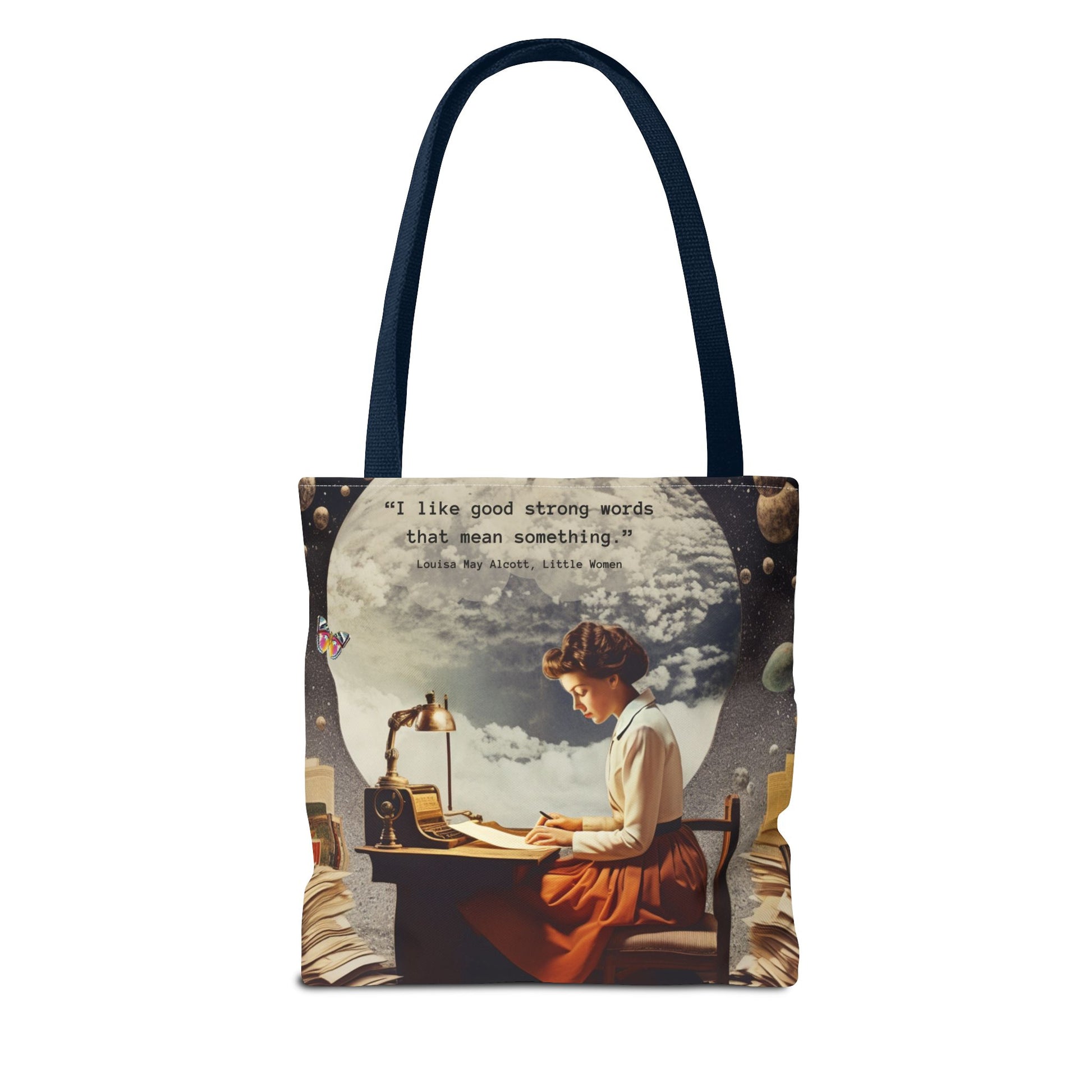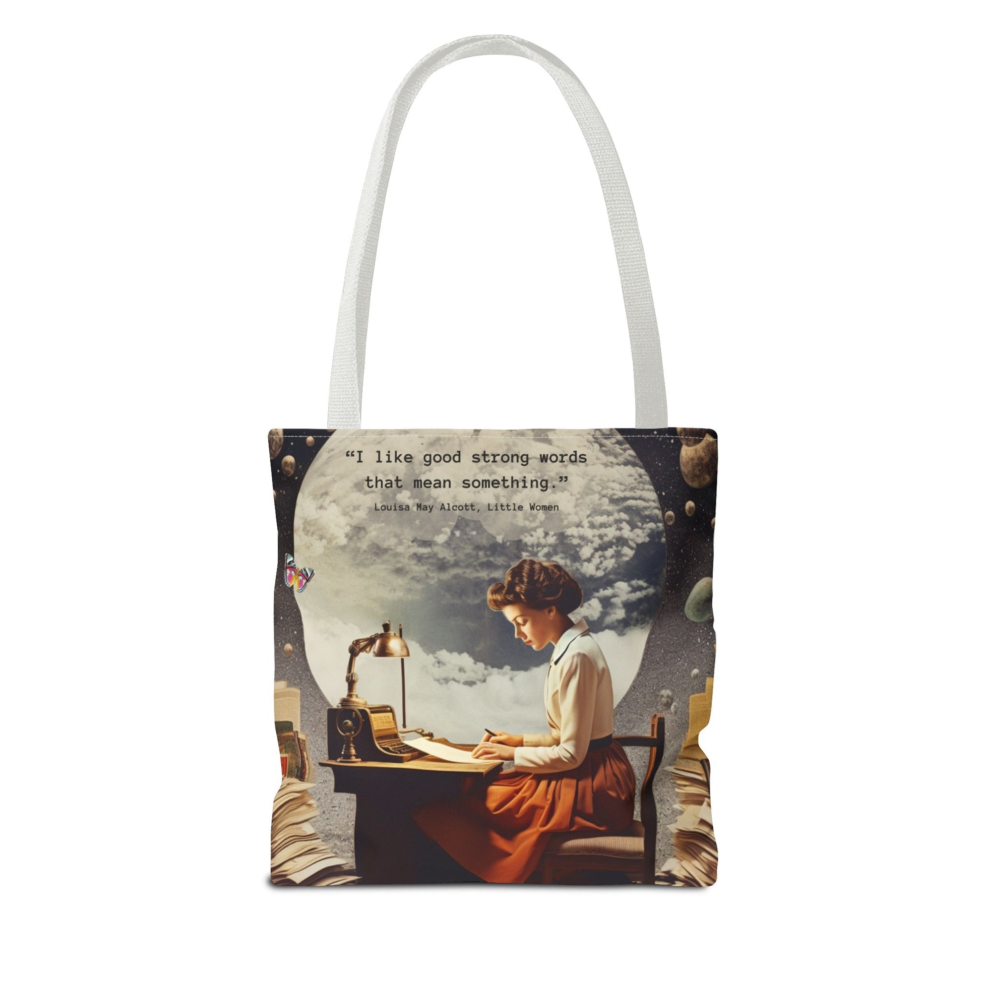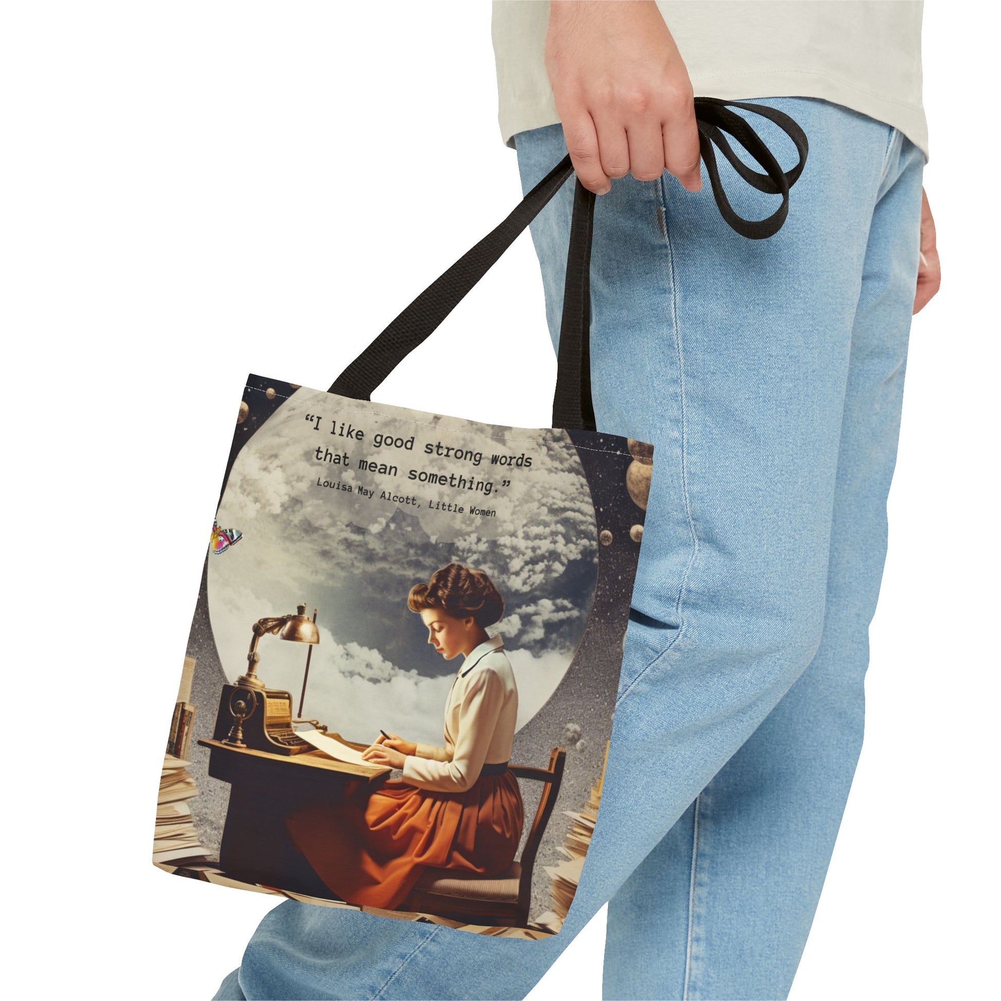 Louisa May Alcott Quote Tote Bag – “I like good strong words that mean something.”