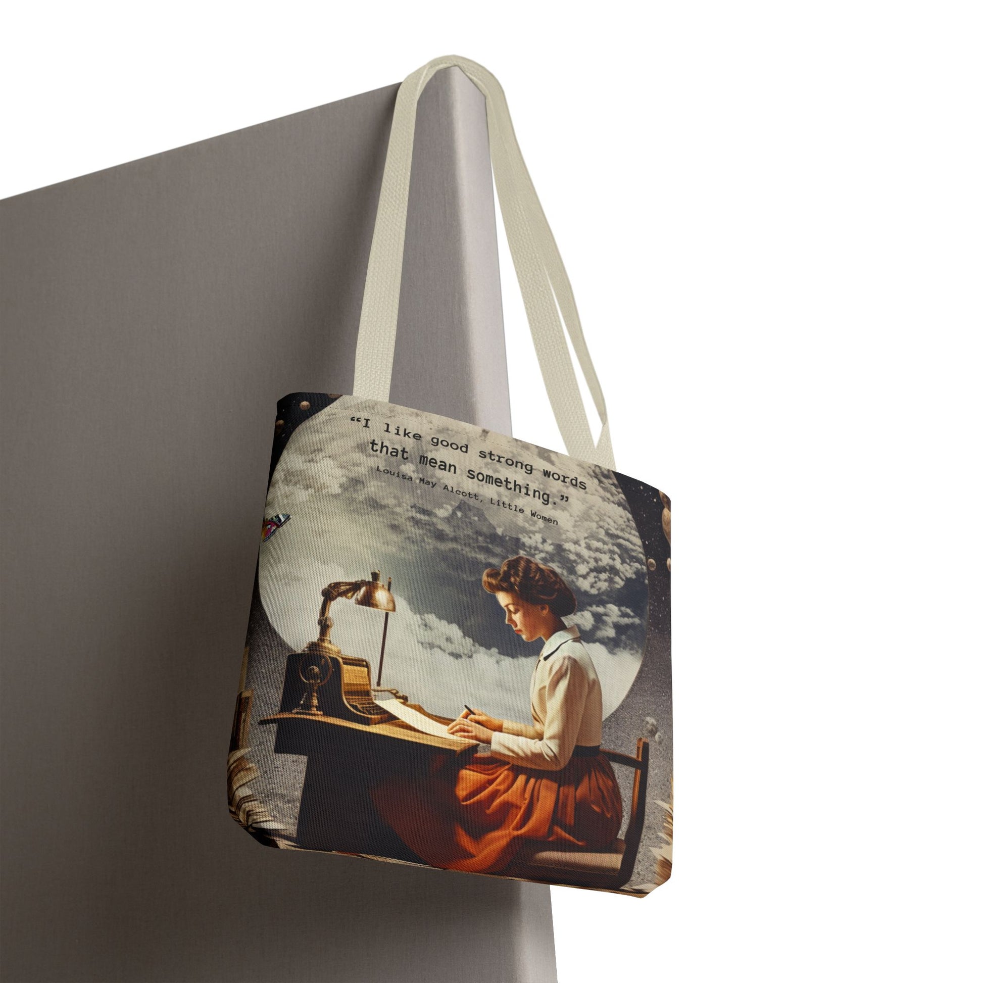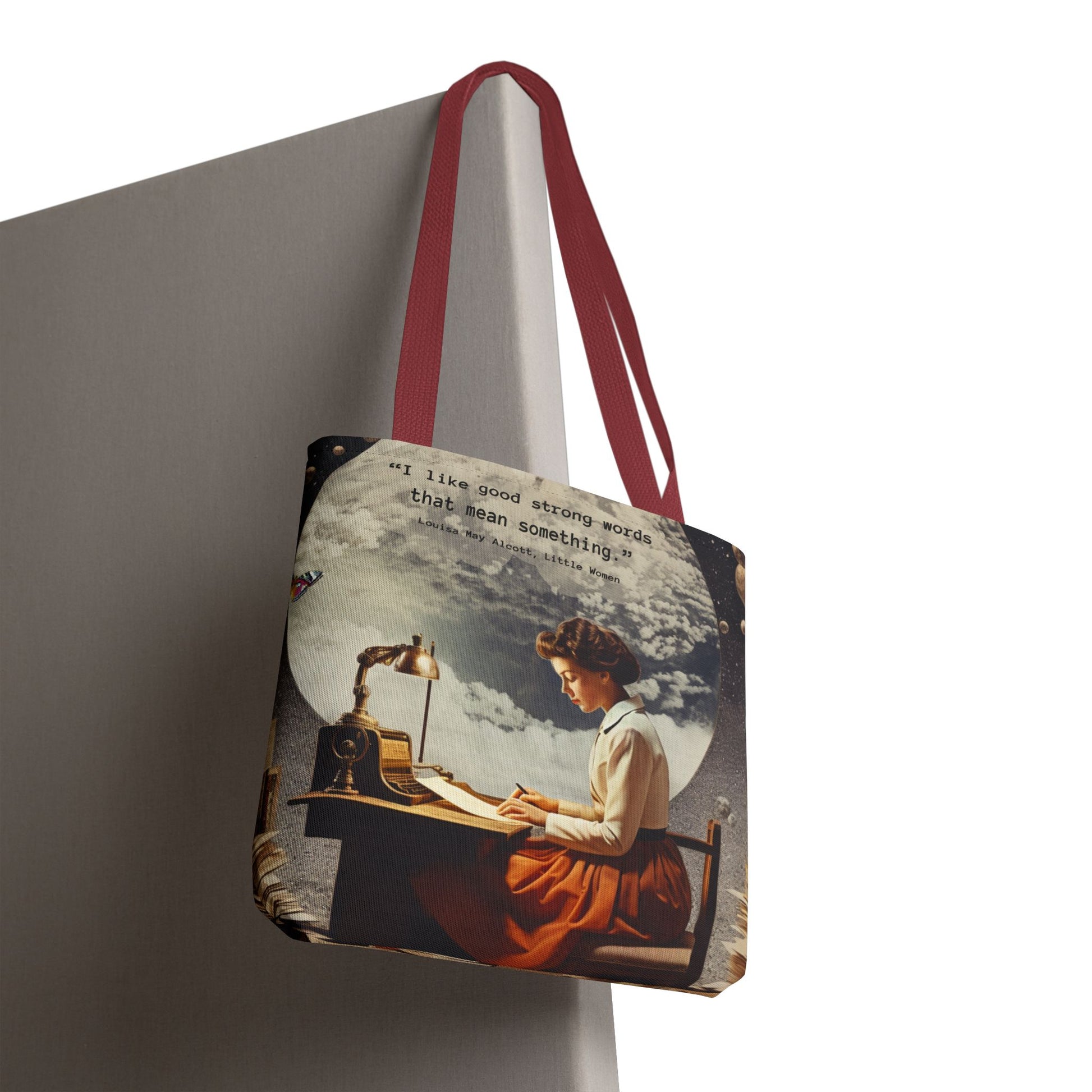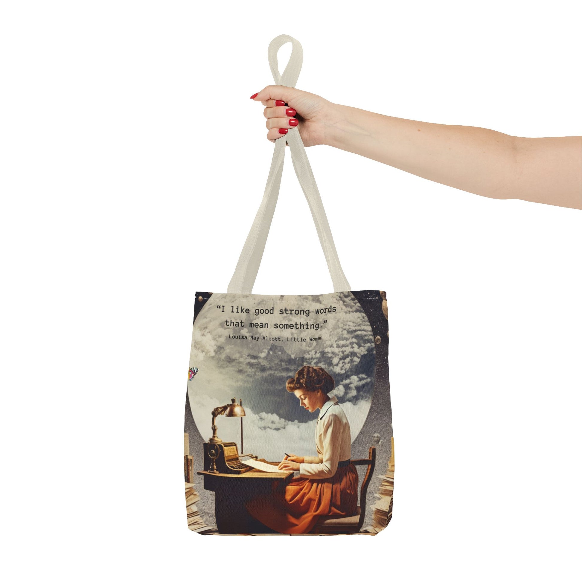 Louisa May Alcott Quote Tote Bag – “I like good strong words that mean something.”