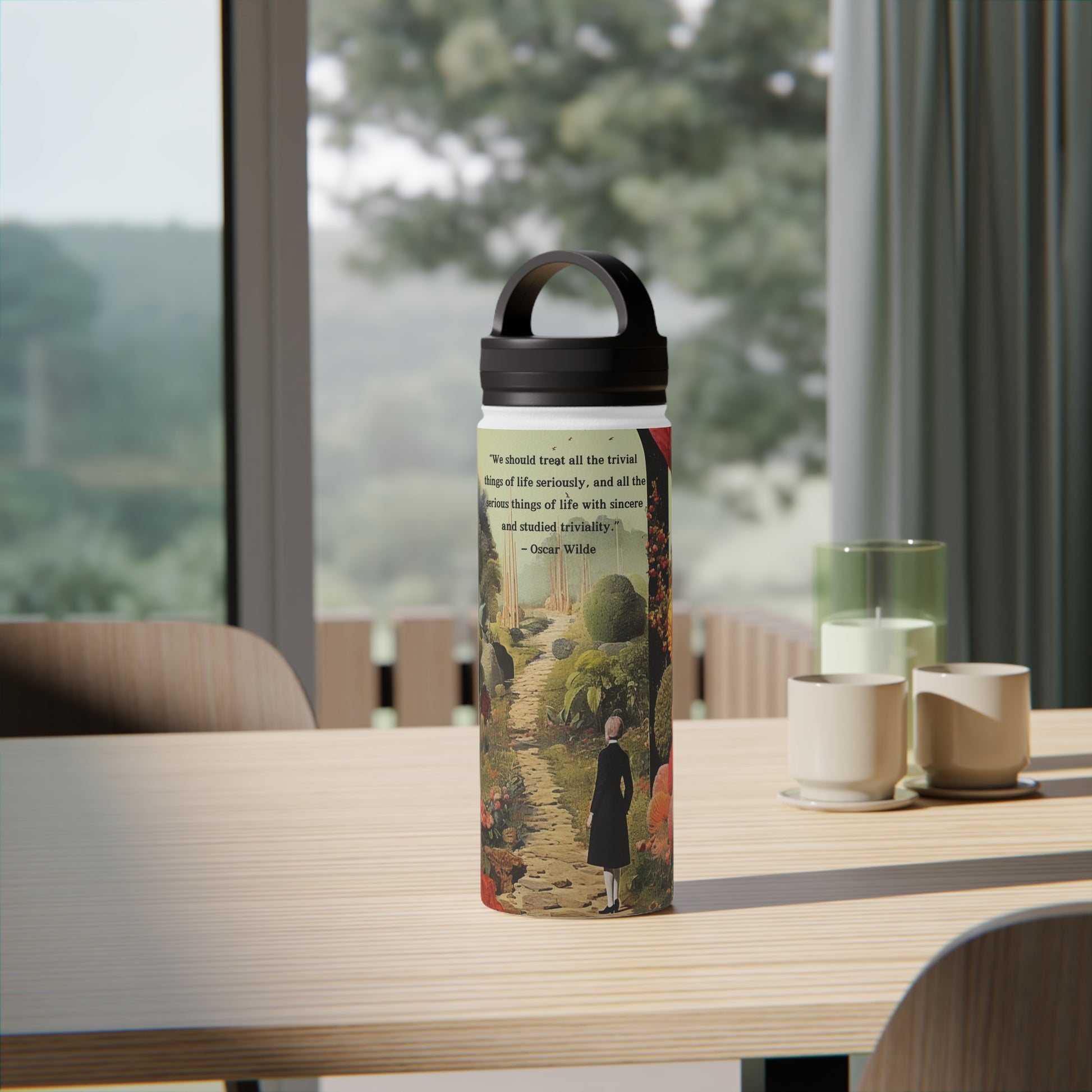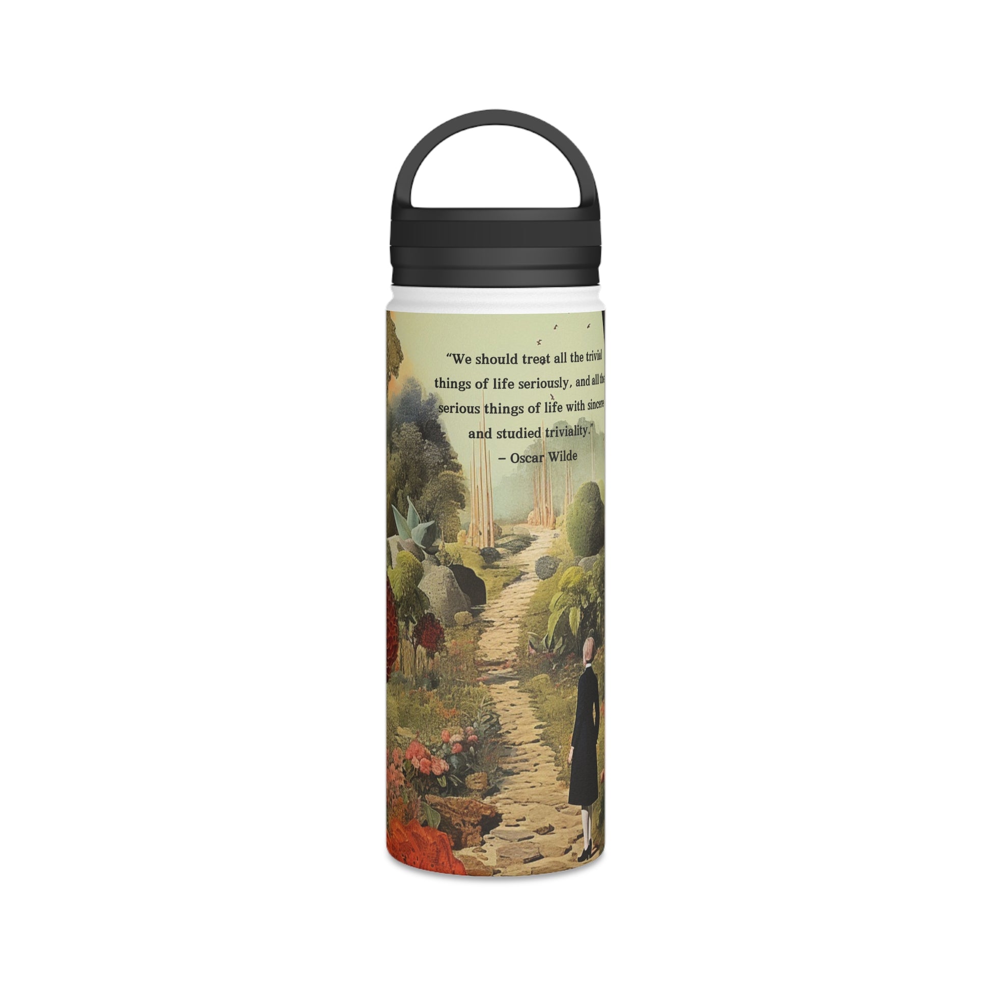 Elevate your hydration experience with our stainless steel water bottle, infused with the timeless wisdom of Oscar Wilde: “We should treat all the trivial things of life seriously, and all the serious things of life with sincere and studied triviality.”