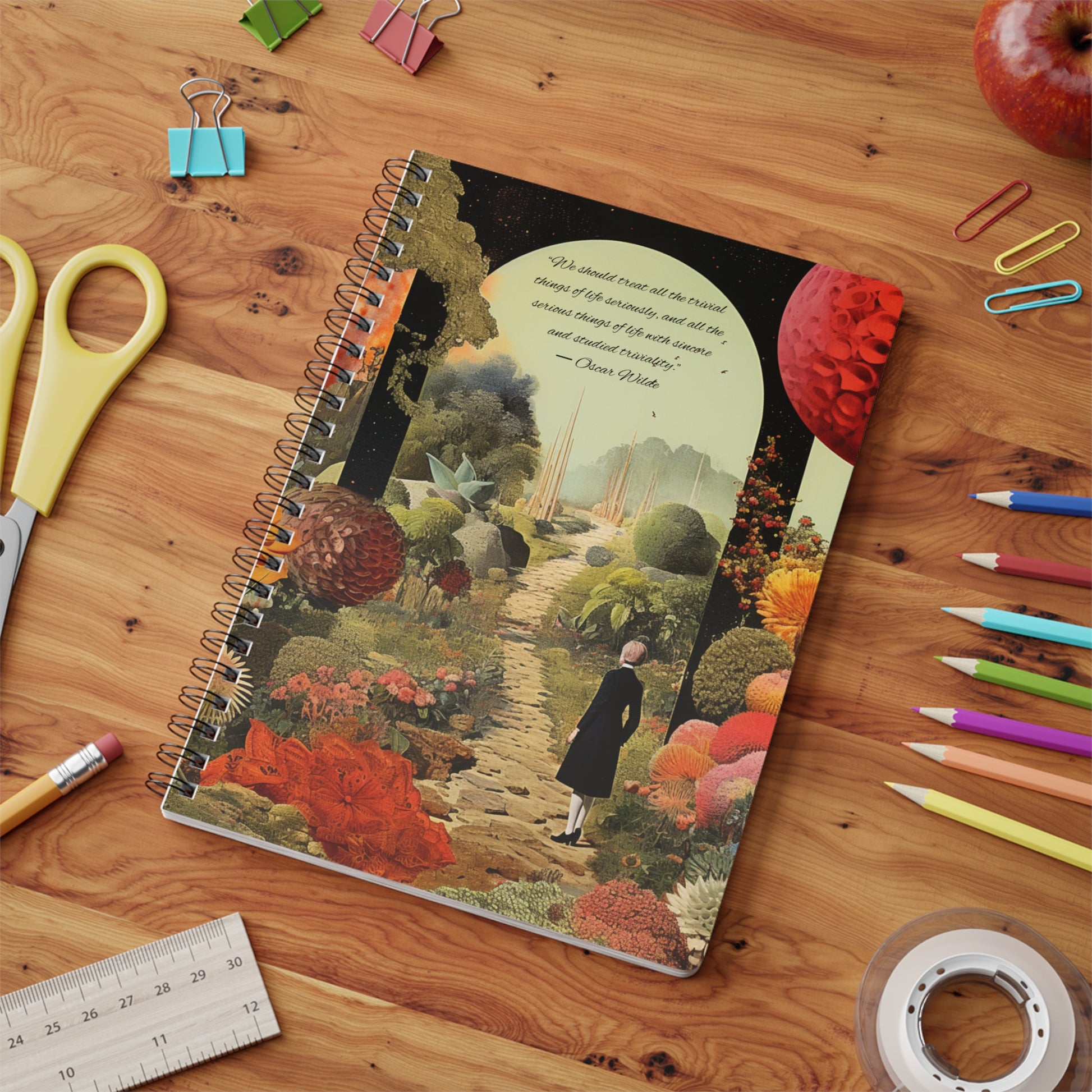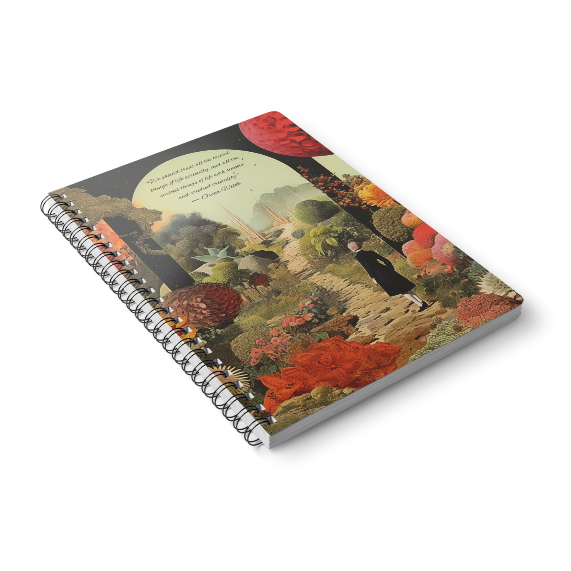 This Oscar Wilde quote notebook is a brilliant reminder not to take anything too seriously.Made with gloss-laminated 280gsm paper covers for a luxurious feel, the notebook features 90gsm lined papers with 150 pages total for all note-taking purposes. Each notebook comes with black wire binding in A5 size, while the design is printed on the front cover.