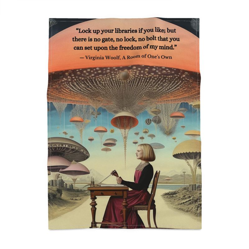 “Lock up your libraries if you like, but there is no gate, no lock, no bolt that you can set upon the freedom of my mind.” This powerful Virginia Woolf quote is printed on 100% cotton with elegant vintage typography — a celebration of creativity, intellect, and independence. A striking addition to any literary kitchen and the perfect gift for readers, writers, and free thinkers.