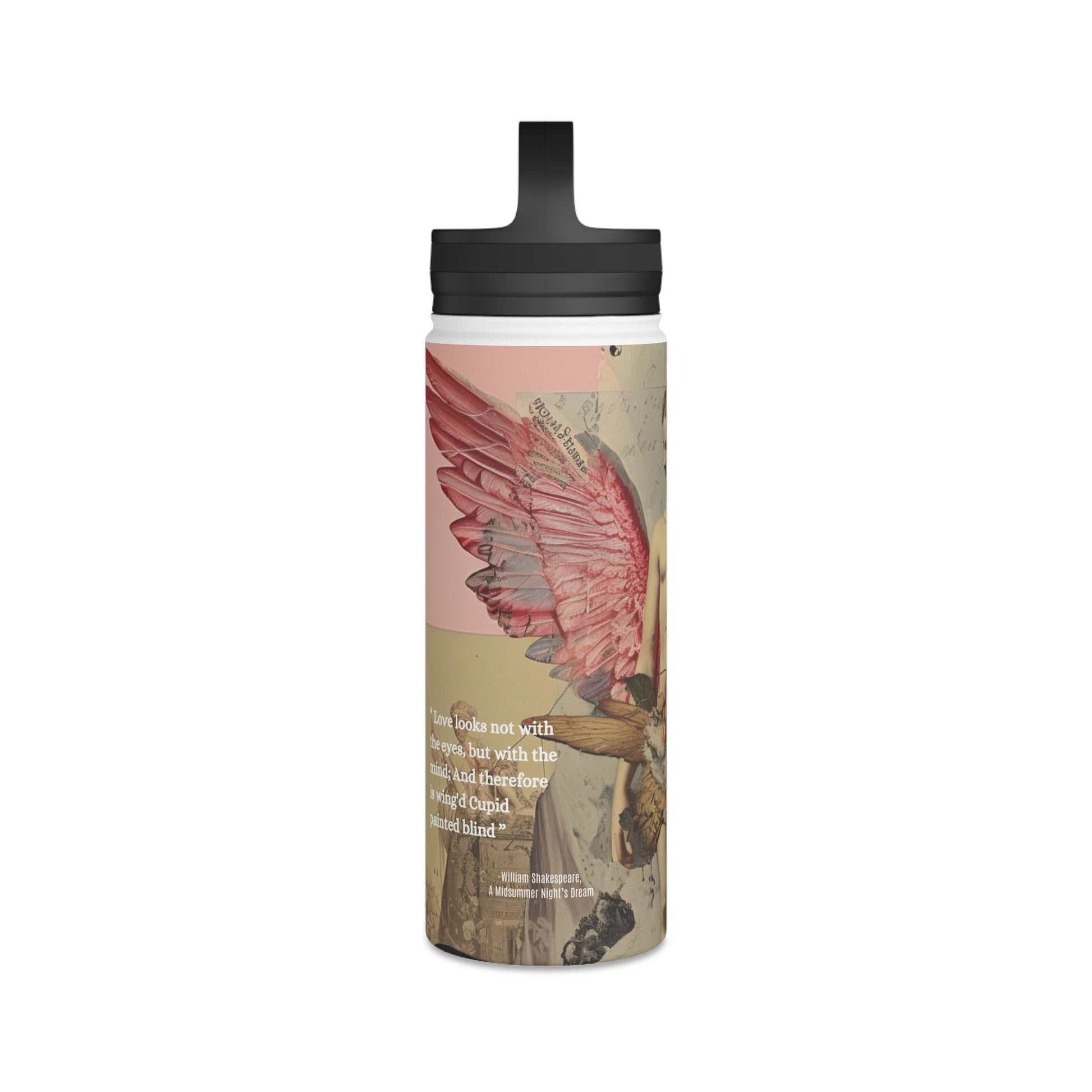 Elevate your hydration game with our stainless steel water bottle, infused with the poetic brilliance of William Shakespeare: "Love looks not with the eyes." Designed for both book lovers and adventure seekers, this bottle comes in 18oz,